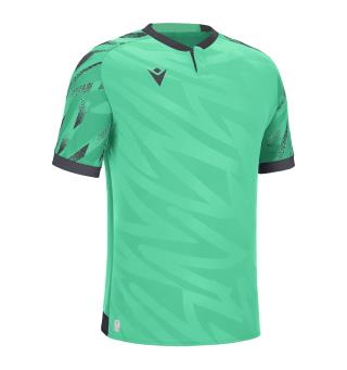 Spillerdrakt til dame og herre laget utelukkende i Eco-Fabric, hentet fra 100% resirkulert PET. Den strikkede V-halsen har stilig påsydd stripe i kontrastfarge. Skjorten har en særegen tekstur som er sublimert på ermene og preget på forsiden.